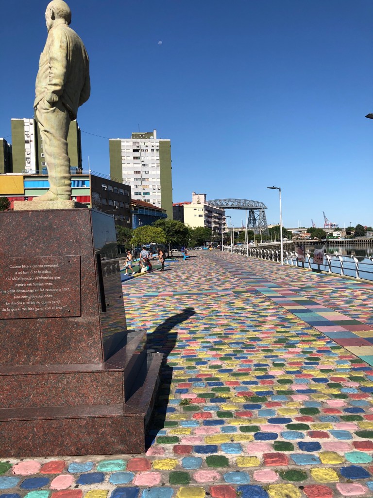 We finally saw all the main touristy neighborhoods of Buenos Aires when we took a tour of the La Boca neighborhood. This is a very special neighborhood for a variety of reasons. For one, it is situated at the mouth of the Plat river, which is where it gets its name, La Boca is Spanish for mouth. Also, since this neighborhood is located at the mouth of the river, it was the original port of Buenos Aires and was the city’s first neighborhood. When the first immigrants arrived in Buenos Aires from Italy, Spain, Portugal and other European countries, they settled in La Boca. It was this mixture of languages and cultures that stared Buenos Aires and the “porteno” culture here. Also, La Boca was the birthplace of Argentine tango! The working-class men in La Boca created this dance and it spread back to Europe. We took a two hour walking tour of the vibrant neighborhood and loved seeing the artistic flair of it. All the houses are painted different colors with cobble streets running between them. There were numerous art vendors painting and selling their works in the streets. The art mimicked the colors of the houses and was so beautiful that we had to buy a piece. Also along this tour, we learned about the importance of futbol, soccer, to the city. The city has professional soccer teams, but the best and most well known team is La Boca Juniors. Many famous players have come from La Boca including Diego Maradona and Carlos Teves. On our tour we visited this teams home stadium which is famous for how close the fans are to the field and how loud it gets during a game. We both loved learning a bit about the history of Buenos Aires and experiencing the artistic neighborhood.