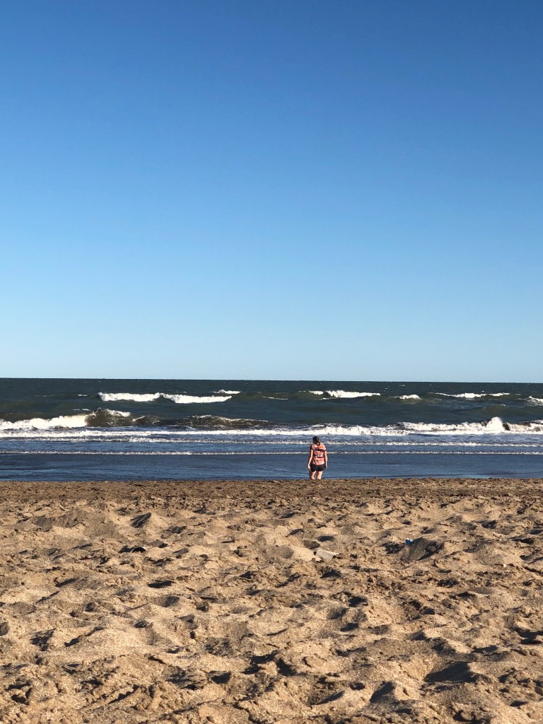 When we woke up from our nap and found ourselves in Pinamar, we were so excited to see the beach! We got off the bus and retrieved our large backpacking backpacks and proceeded to walk into town to our Airbnb for the week. The walk was about 1.5 miles but we loved being outside and feeling the cooler ocean air. We were so tired of the pollution in Buenos Aires that the fresh air was a rejuvenating experience. When we arrived at the Airbnb we were thrilled to see it was only a 3 minute walk to the beach! We chose this place due to its proximity to the beach but being able to see the ocean so close to our apartment was amazing. Unfortunately, the proximity to the beach was the best attribute of our place. The apartment was ok but we didn’t like how grimy it felt. All the dishes and cookware felt sticky or was rusty. We quickly decided we would not be cooking much as home. Even the floors and the bathroom didn’t seem clean but we could endure the grime for the week since the price was decent and we would be at the beach most of the time anyways. We proceeded to quickly unpack our backpacks and head for the beach!