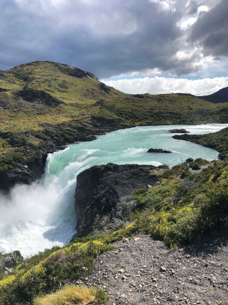 Our next day was also another warmup day of hiking consisting of two smaller hikes to viewpoints. These two were to mirador condor and mirador cuervos. Both provided amazing viewpoints of the stereotypical Patagonia landscapes. The hike to mirador condor was a short 2 km up but the crazy wind made it feel more like 6 km. Neither of us had felt wind like this before. At one saddle, the wind howled through the narrow saddle gap and the gusts had the power to knock us over if we were not prepared. Some of the gusts even visibly pushed us backward as we struggled through the windy gap. The view from the top was spectacular though! It provided a full 360-degree view of the mountains and lakes of the park! Even though the wind was almost knocking us over, we huddled down behind a boulder and stayed to enjoy the view for a while. After finishing that hike, we drove a short distance to our other hike for the day, mirador cuervos. This hike was also very short, about 6 km in total, but is very popular due to having two distinctive viewpoints. The first viewpoint was salta grande, a large waterfall. While this waterfall wasn’t very tall, the amount of water pouring over it was impressive at 1000 m3 a second! After the waterfall, the trail led to a viewpoint over a beautiful lake with views of the mountains. This viewpoint was much less windy, so Nikki and I took a 30-minute nap in the sun here.